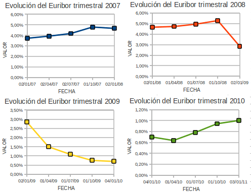 A inicios del 2010 el Euribor trimestral tenía un valor de 0,70%, cifra que comparada con el valor de 3,06% que presentaba el índice en julio de 2007, no logró generar confianza en el inversor.