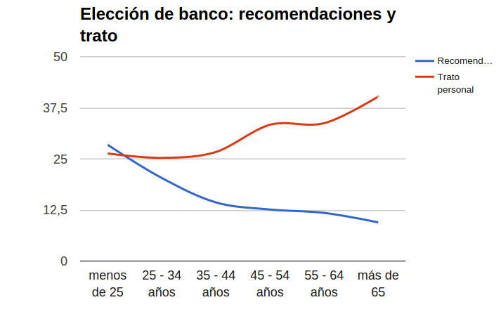 De los 35 años en adelante, no hay cambios en las prioridades, que son, por este orden: el trato personal, el servicio de banca ‘online’ y la cercanía de las sucursales.