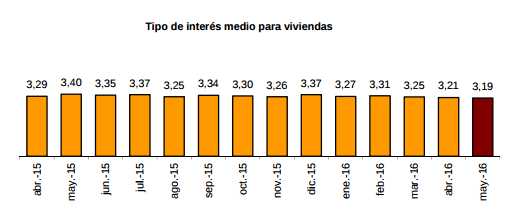 En cuanto interés medio, al inicio, fue del 2,90%, un 8,4% inferior al de mayo de 2016.